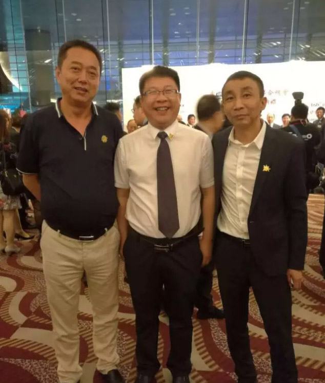 (挨著我商會(huì)會(huì)長(zhǎng)王學(xué)淵而站的兩位紅衣男士左為包商銀行董事長(zhǎng)李振西、右為東道主陳振文會(huì)長(zhǎng))